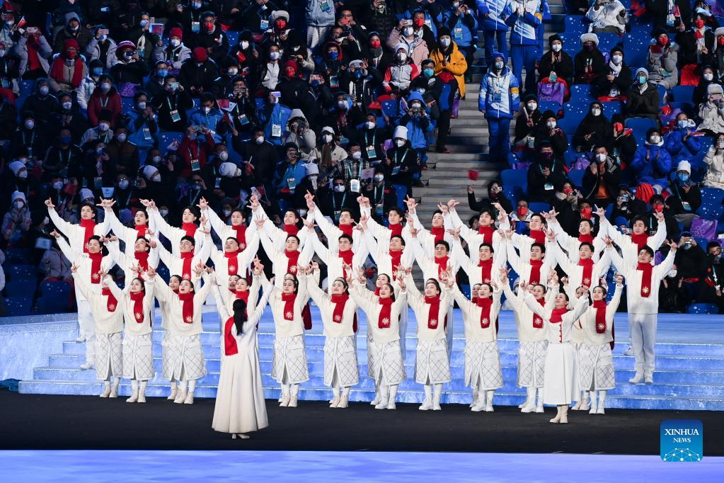 A choir of vision impaired singers sings a cappella during the opening ceremony of the Beijing 2022 Paralympic Winter Games at the National Stadium in Beijing, March 4, 2022. [Photo/Xinhua]