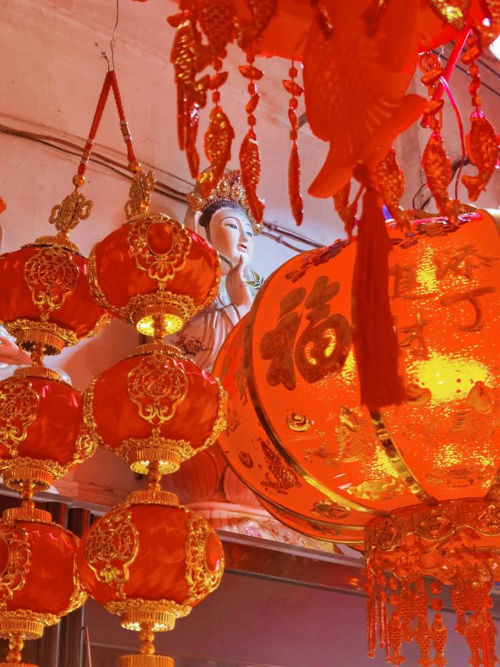 Red lanterns for sale during the Chinese New Year holidays in an incense store in Nanping, East China’s Fujian province. [Photo by Chen Zhizhi/provided to www.chinaservicesinfo.com]