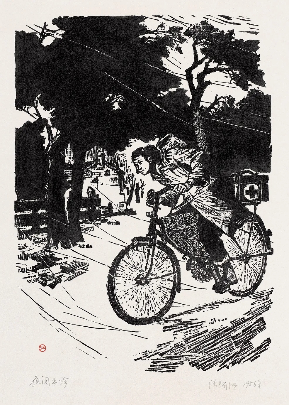 Making a House Call at Night, woodblock print, Zhang Huaijiang (1922-1989), 1956, collection of the Zhejiang Art Museum [Photo/Official WeChat account of the Zhejiang Art Museum]