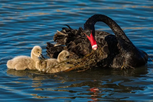 Black swans usually go out to eat and play in the morning, go home to rest at noon, and then go out for a walk and eat at three or four in the afternoon.