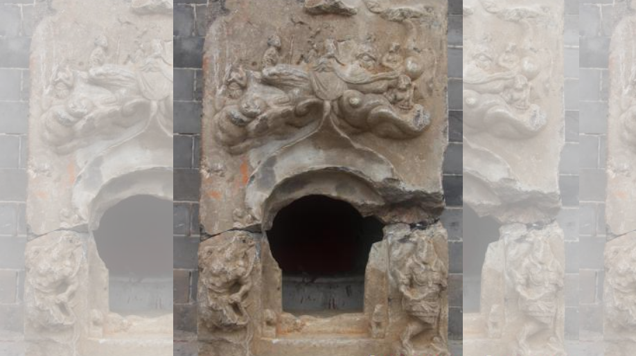 The carving is a part of a "seven-level pagoda". The figures are still very exquisite, with Sakyamuni Dharma at the front upper part. Two stone lions are on each side of the lower part.
