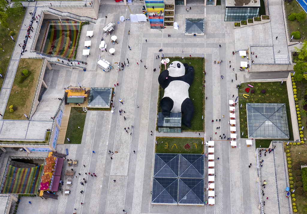 What a stunning sculpture! Lying at the center of Yangtianwo Square in Dujiangyan, Southwest China’s Sichuan province, is a giant panda taking a selfie with a selfie stick. The sculpture was created by Dutch artist Florentijn Hofman. It weighs 130 tons.