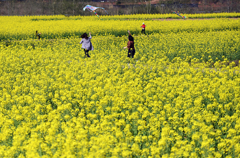 Blooming golden rapeseed flowers draw visitors to Peng’an county, Nanchong, Southwest China’s Sichuan province. [Photos by Liu Yonghong/provided to www.chinaservicesinfo.com]