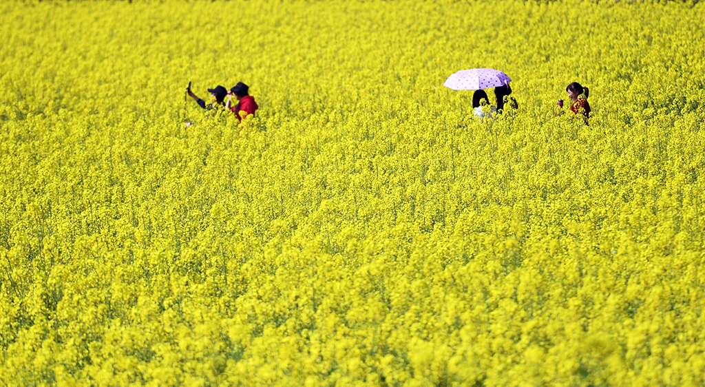 Blooming rapeseed flowers present gorgeous rural landscape in Sichuan