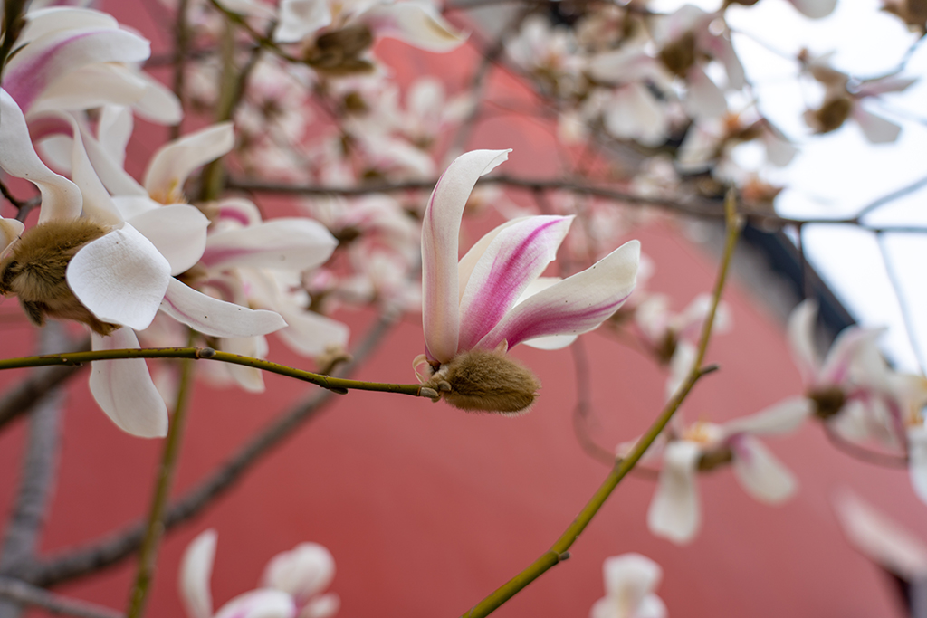 Magnolia flowers bloom outside east gate of the Forbidden City