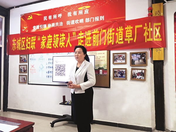 Han Zhu, head of the group, had worked in education for 34 years. Now retired, she volunteers with the Family Leader in Reading project. The purpose of the project, launched by Dongcheng Women's Federation, in Beijing's Dongcheng District, on July 8, 2018, is to cultivate volunteers who can guide residents in reading, establish primary-level reading clubs and organize various reading activities to enrich residents' cultural lives.