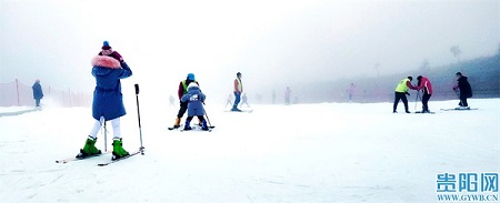 The Guiyang Yunding ski slope in Huaxi district has also seen a daily increase of 40 percent in tourists during the holiday. It has a max altitude of 1,500 meters with one trail for beginners and one for experts, as well as one dry trail for skiing year-round.