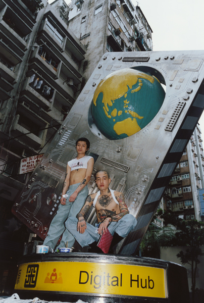Another fashion photographer, Joyce NG, hailing from China's southern coastal city Hong Kong, brings to the show a roster of posters made from her 2015 photo that features models posing by Digital Hub, an iconic monument with a little fountain in Hong Kong's Shum Shui Po. Yet, the monument was demolished in 2021 as public complaints surged over people littering in the fountain amid COVID-19. Hence, Joyce NG's work has become a pictorial souvenir of this monument.