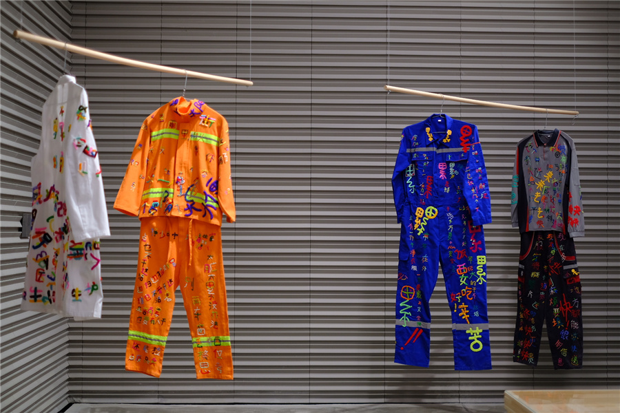 Showing society's stereotypical impression of those taxing jobs, usually undertaken by migrant workers from rural areas, those characters have attracted viewers to stop and read closely. For instance, the character Lei (tiring or tired) appears repeatedly on a construction worker's uniform, which many viewers said has struck a chord with them.