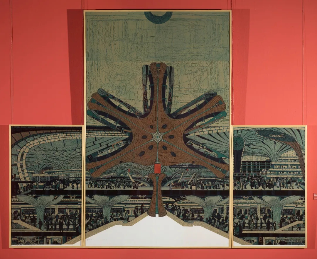 Beijing Daxing International Airport, Sha Yonghui (1978-), woodblock print, 2021, collection of NAMOC [Photo/Official WeChat account of NAMOC]