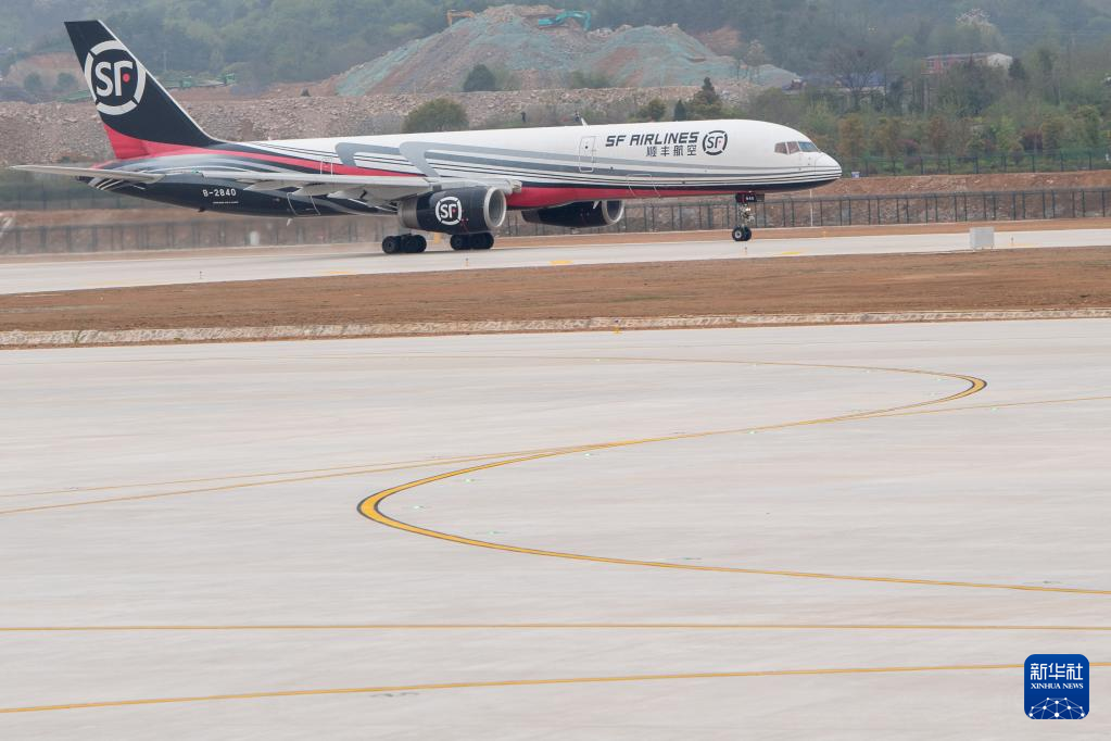 An air freighter taxis at the Ezhou Huahu Airport in Ezhou, Central China's Hubei province, March 19, 2022. [Photo/Xinhua]