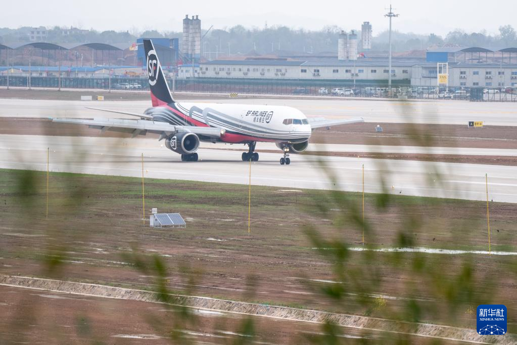 An air freighter taxis at the Ezhou Huahu Airport in Ezhou, Central China's Hubei province, March 19, 2022. [Photo/Xinhua]