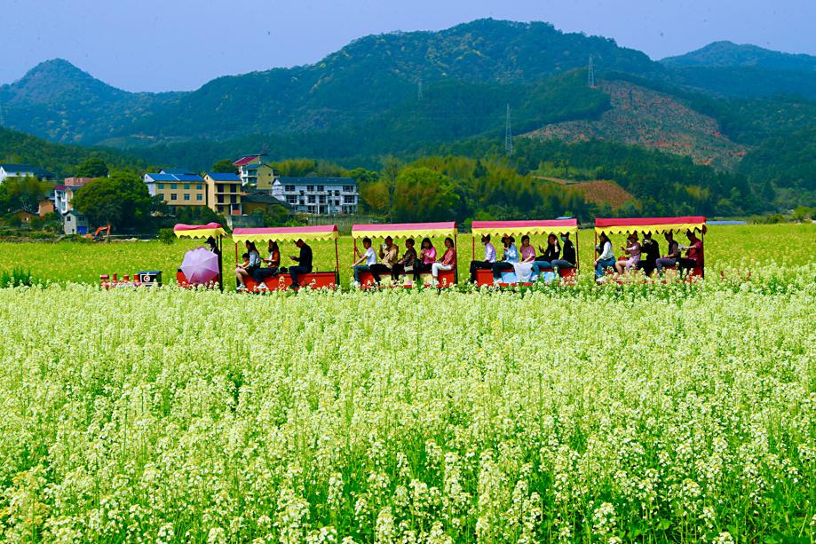 As spring arrives and temperatures rise, colorful rape flowers have entered full bloom in Wufu town in Wuyishan, Fujian province, attracting many tourists for sightseeing. The town has planted not only rape but also lotus, gesang and chimonanthus, making it a place where flowers can be viewed through all four seasons.