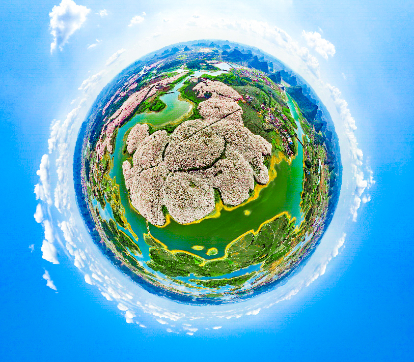 As spring comes and flowers bloom, the cherry garden in Guian, Guizhou province, welcomes visitors with a large number of blossoms along the banks of Hongfeng Lake, decorating the earth in romantic shades of pink.