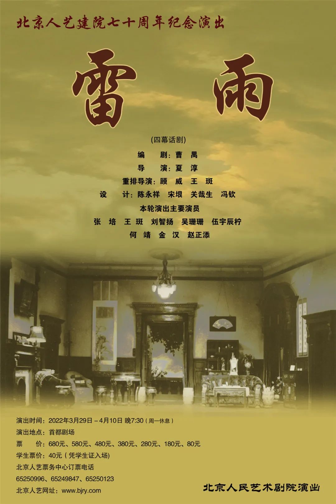 Written by the great Chinese playwright Cao Yu (1910-96), Thunderstorm has enlightened generations of audiences since its debut in 1954. This classic work will be staged from March 29 to April 10 by the Beijing People's Art Theatre at the Capital Theater in Beijing. Don't miss it!
