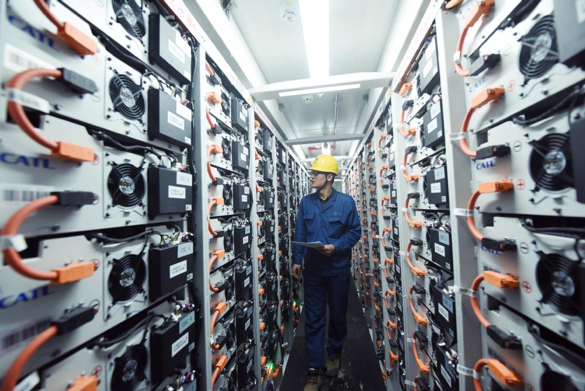 A technician inspects equipment at a power storage facility in Hangzhou, Zhejiang province. [PHOTO BY LONG WEI/FOR CHINA DAILY]
