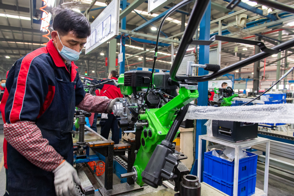 Plowing machines are assembled in the factory of Chongqing Shineray Power Equipment Co in Chongqing, on Jan 17, 2022. [Photo/IC]