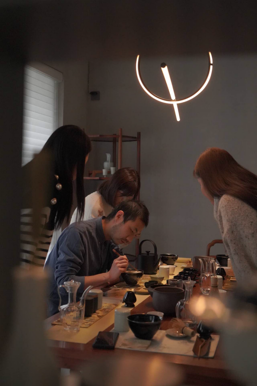 40-year-old Shanghai resident Han Zheming has created nearly 200 patterns in tea cups based on ancient paintings, as part of a revival of tea art, or  dian cha. [Photo provided to China Daily]