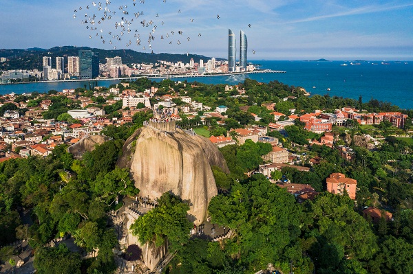 A bird's-eye view of Xiamen, a coastal city in Fujian province that aims to develop itself into an international consumption-oriented city. [Photo provided to chinadaily.com.cn]