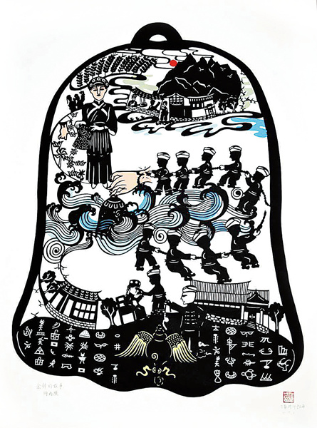 A Shanghai paper-cutting artwork by Shi Qinling features ethnic Naxi people.[Photo provided to China Daily]