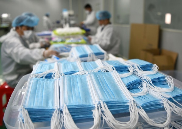 Workers make medical protective masks at a factory in Nanchang, Jiangxi province. [Photo by Hu Guolin/For China Daily]