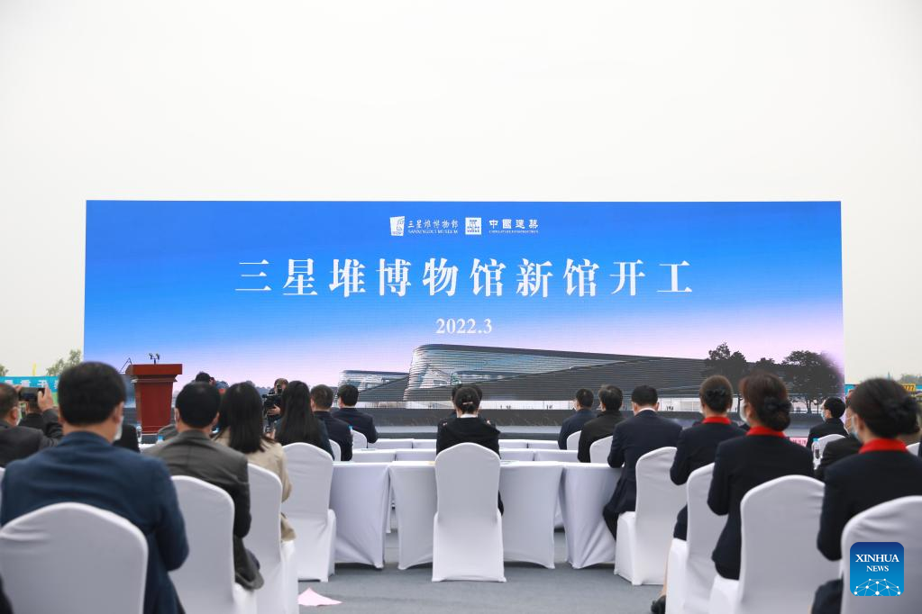 The construction of a new building of the renowned Sanxingdui museum began on Tuesday in the city of Guanghan, Southwest China's Sichuan province.
