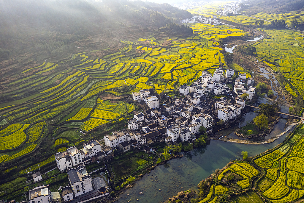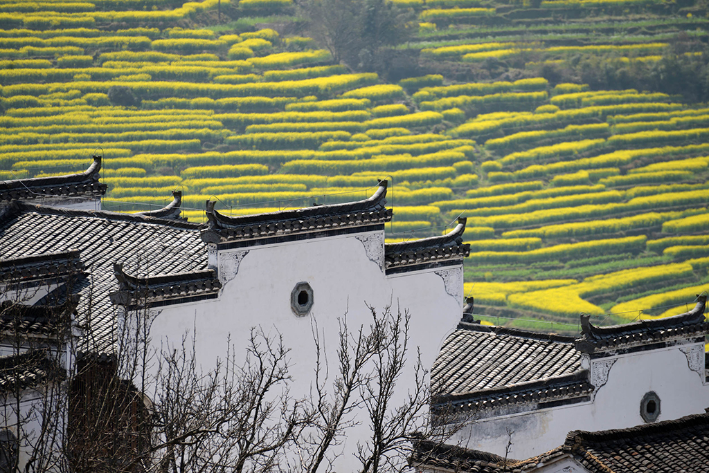 Dubbed “the most beautiful village in China”, Wuyuan county in East China’s Jiangxi province is one of the best places to admire rapeseed flowers. In March, around 6,700 hectares of golden rapeseed flowers are blooming all over the county. They surround Huizhou-style folk dwellings featuring whitewashed walls and grey tiles. Hordes of tourists come in the spring to enjoy the beauty.