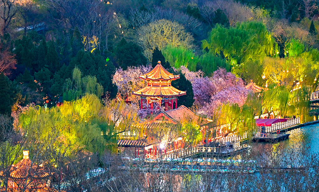 Let’s go on a virtual trip of the Daming Lake in Jinan, East China’s Shandong province! Pink Chinese flowering crabapples are blooming all around the ancient pavilion and the green waters. So many shutterbugs and tourists busy taking snaps of the beautiful scenery.