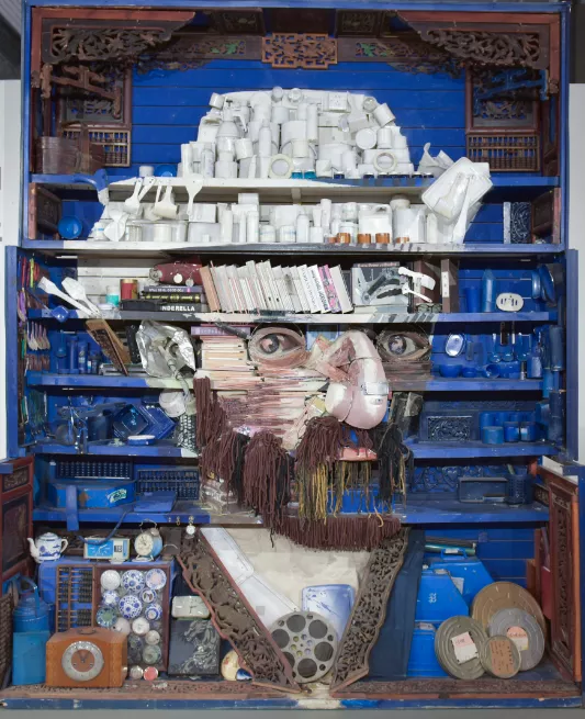 Van Gogh in Everyone’s Home, an installation made up of an old bookcase, used films and disposed household items [Photo/Official WeChat account of the Chongqing China Three Gorges Museum]