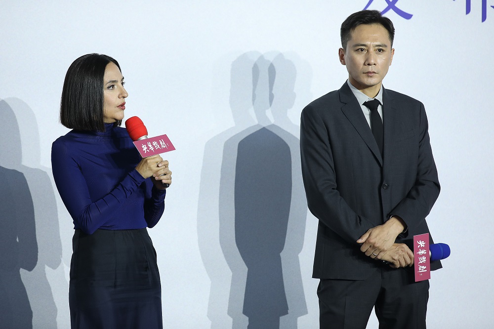 Liu Ye (R) and his wife Anais Martane, who is one of the producers, answer questions from journalists. [Photo/VCG]