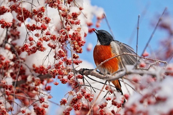 A tree and a stunning bird create Spring-like beauty. [Photo provided to www.chinaservicesinfo.com]