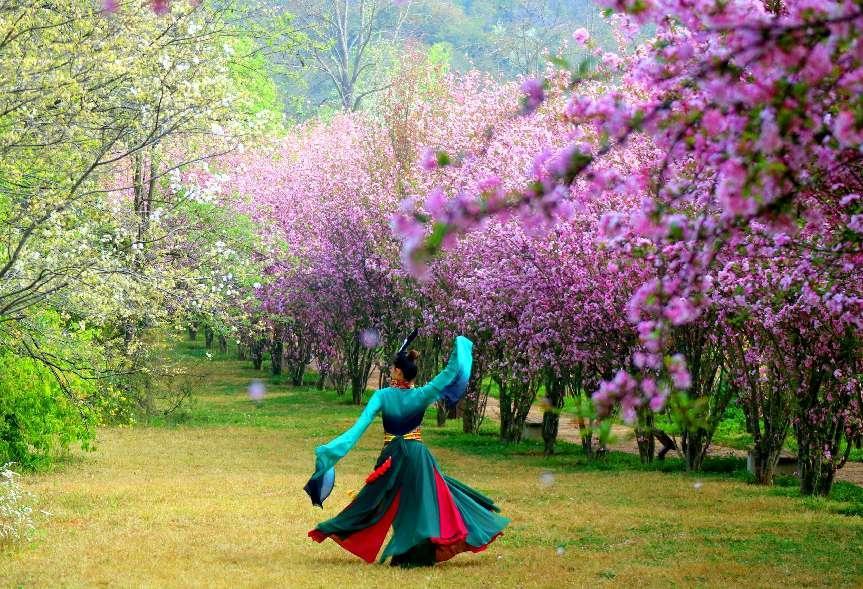 Today is Qingming Festival, also known as Tomb-Sweeping Day. On this day, Chinese people sweep ancestors’ tombs and go on a spring outing. In the Naigu Stone Forest Scenic Area in Southwest China’s Yunnan province, a tourist dressed in green dances amid a sea of colorful flowers. Such an attractive scene!