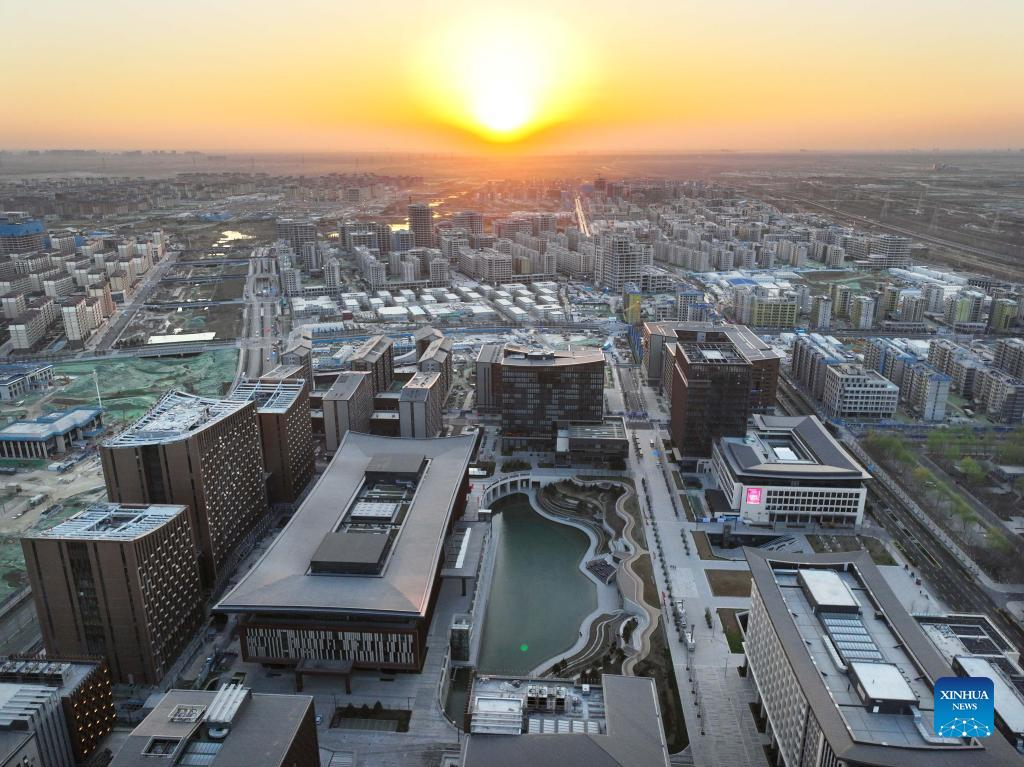 Photo taken on March 31, 2022, shows the business service center in Xiongan New Area, North China's Hebei province. [Photo/Xinhua]