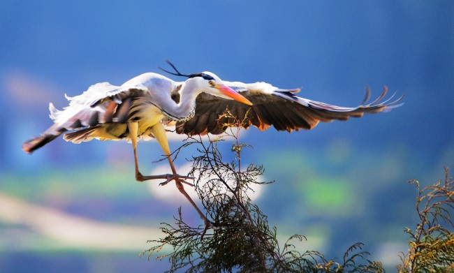The grey heron is a second-level national protected migratory waterfowl that lives on the edge of rivers and lakes. They are able to live in Zhaohua's Taigong township thanks to its suitable ecosystem.