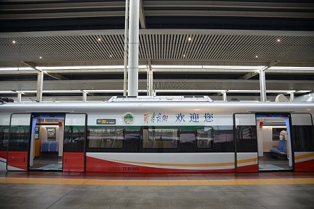 The Guiyang urban express railway adopts a CRH3A-A multiple-unit train with 184 seats. [Photo provided to China Daily]