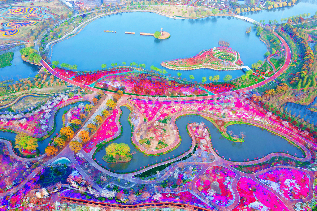 The Kaisha Island in Nantong, East China’s Jiangsu province is rich in natural resources and beautiful ecological environment in the Yangtze River Basin. In spring, the island is surrounded by a sea of cherry and plum blossoms and shibazakura flowers, complementing the green water and azure sky. Check out its amazing aerial view!