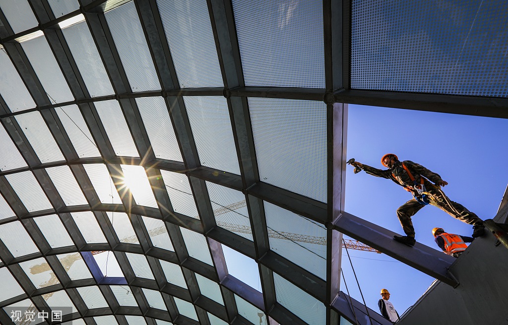 Workers are seen at the construction site of Haikou duty-free shopping complex in Haikou, South China's Hainan province, on Dec 3, 2021. [Photo/VCG]