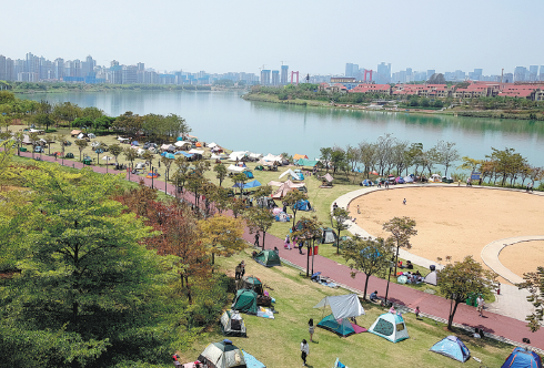 Going camping somewhere close to home and visiting parks or suburbs to appreciate the spring blossoms were among the favorite leisure activities for people during the recent Tomb Sweeping Day holiday, which saw a year-on-year decline in domestic travel amid a COVID-19 resurgence in parts of the country.