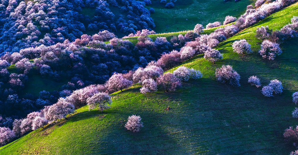 Apricot trees growing over valleys and hillsides in Xinjiang