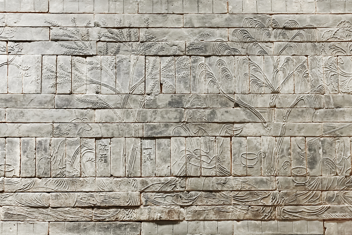 The stamp mold brick wall depicting the Seven Sages of the Bamboo Grove and Rong Qiqi [Photo/IC]