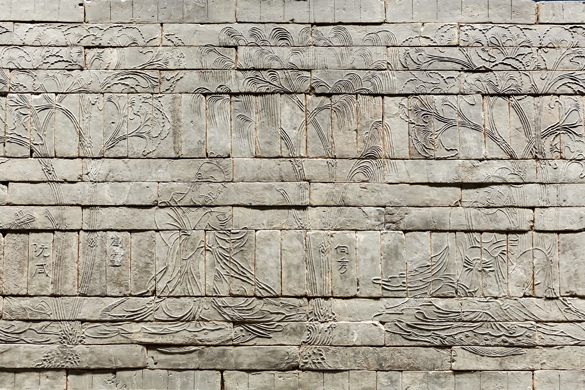 The stamp mold brick wall depicting the Seven Sages of the Bamboo Grove and Rong Qiqi [Photo/IC]