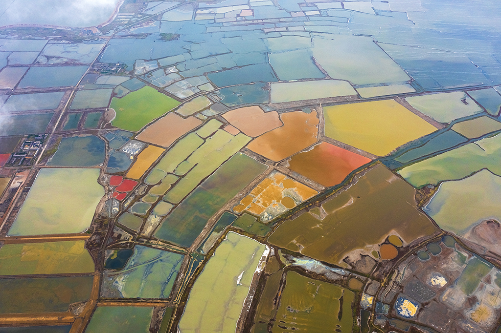 Aerial views of the colorful salt lakes shrouded in mist in Yuncheng, North China’s Shanxi province [Photos/IC]