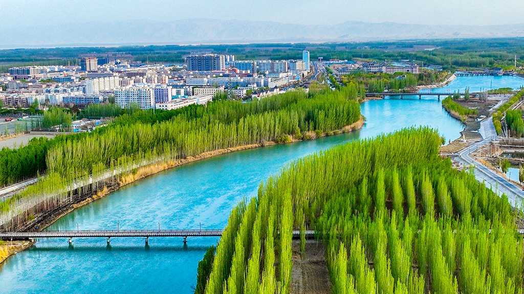 The Kaidu River in Bohu county, Northwest China’s Xinjiang Uygur autonomous region is surrounded by green trees. [Photo/IC]