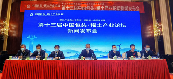 Information on the upcoming 13th Baotou China International Forum on the Rare Earth Industry is released during a press conference held on Dec 12 in Hohhot, Inner Mongolia. [Photo/northnews.cn]