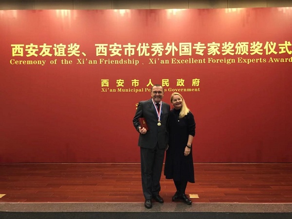 The Croatian couple is all smiles as they receive the Xi'an Friendship Award in 2017. [Photo/Xi'an news network]