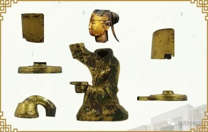 Seven disassembled parts of the Changxin palace lamp [Photo/Official WeChat account of the Hebei Museum]