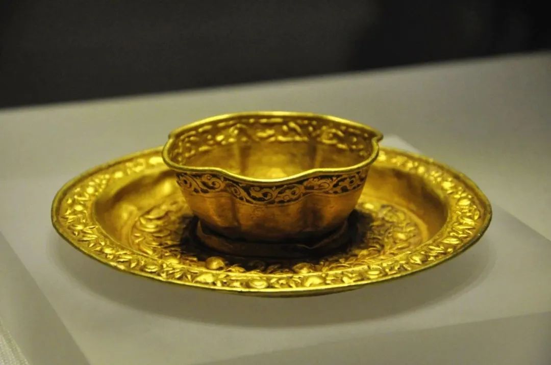 Gold cup and saucer, Yuan Dynasty [Photo/Official WeChat account of the Chongqing China Three Gorges Museum]