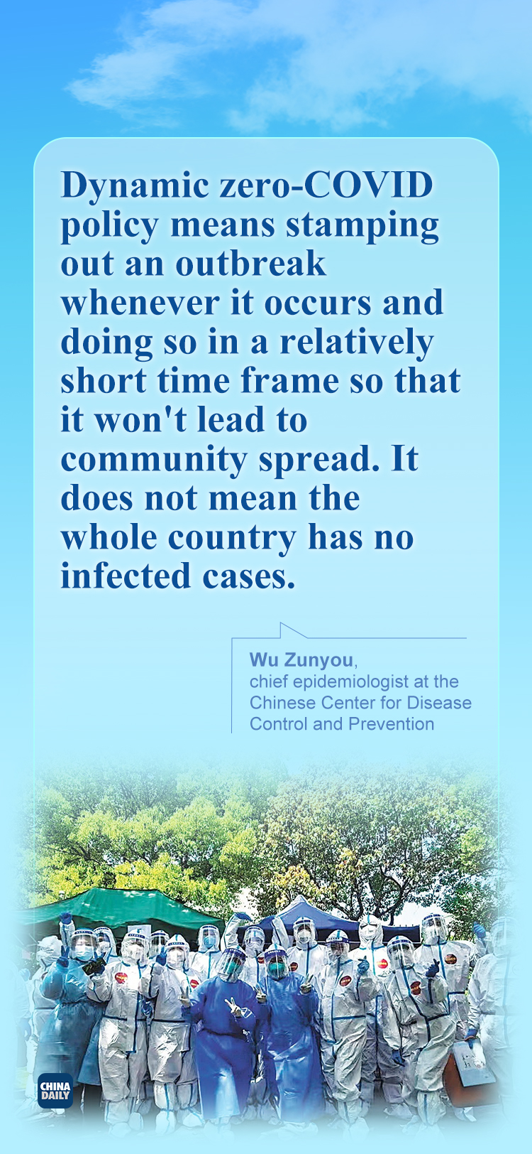 Dynamic zero-COVID policy means stamping out an outbreak whenever it occurs and doing so in a relatively short time frame so that it won't lead to community spread. It does not mean the whole country has no infected cases.