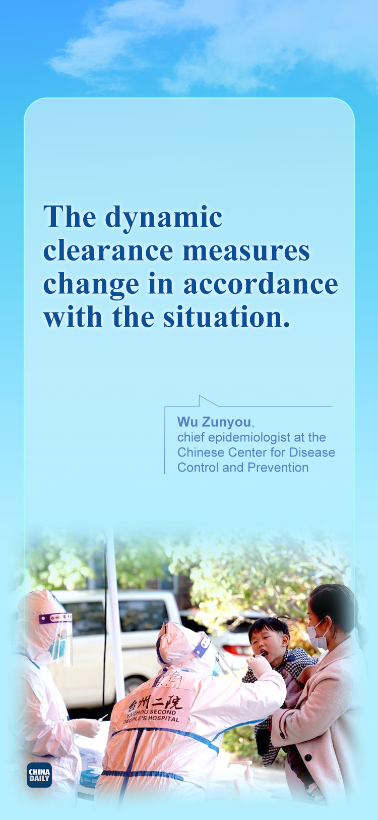 The dynamic clearance measures change in accordance with the situation. If an outbreak is detected early, health workers only need to quarantine and treat the patients while keeping an eye on the quarantined close contacts. In the past two years, Shanghai had encountered 12 outbreaks and had successfully quelled them without resorting to lockdowns. Lockdown measures are used when wide scale community spread occurs.