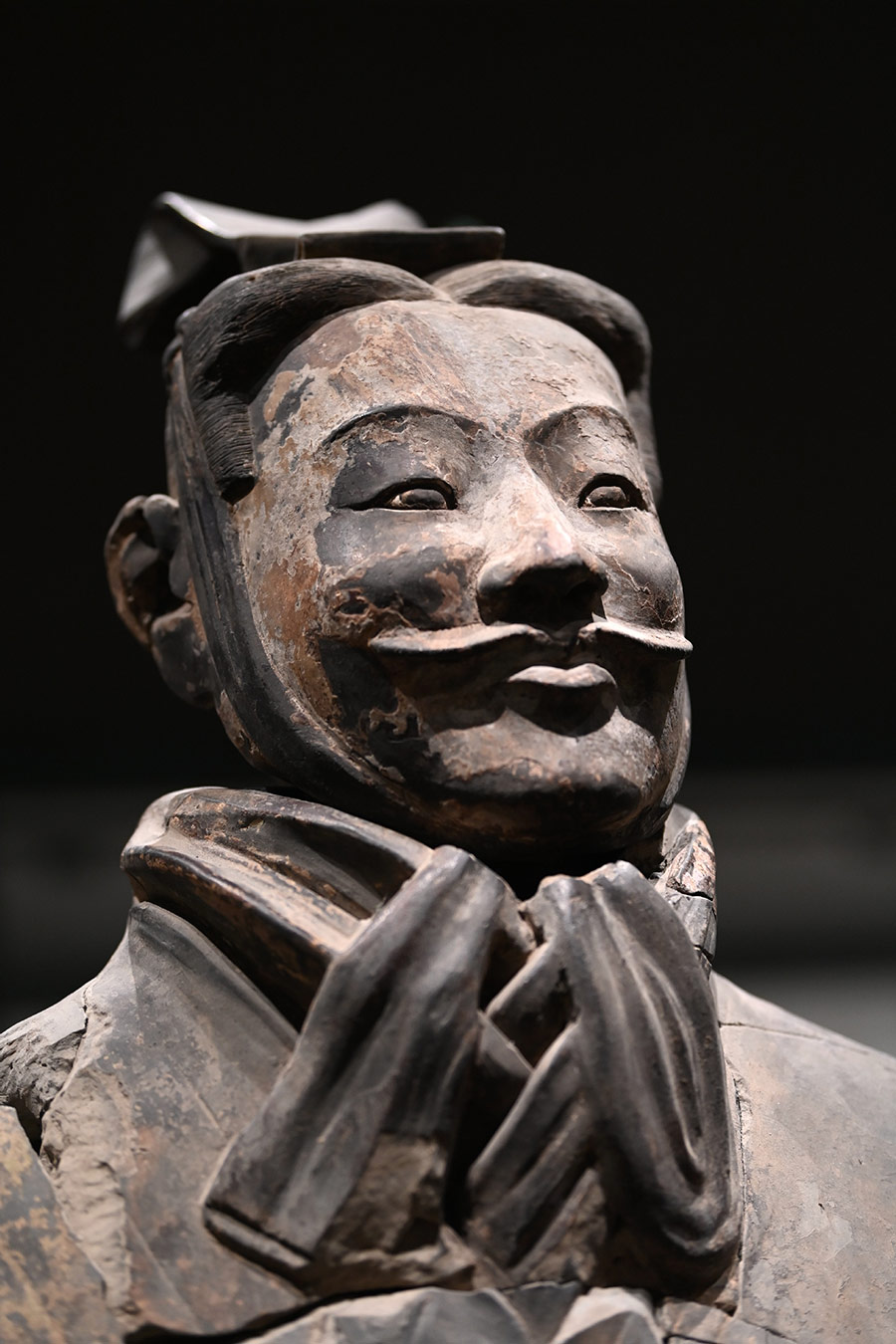A terracotta official is on display on April 16 at Shaanxi Archaeological Museum in Xi'an, Northwest China’s Shaanxi province. [Photo/Xinhua]